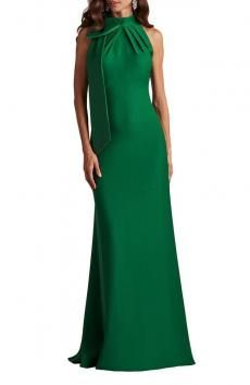 SALE!133,000→100,000円(税抜) 凛としたグリーンが映える ロングドレス。顔周りの華やかな ディテールがポイントです♪