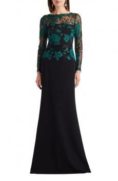 【SALE】110,000→80,000円(税抜) シックなブラックドレスに グリーンで華やぎをプラス♡ シーズン問わず着られるドレス