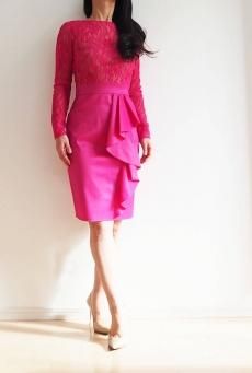 【SALE】70,000→50,000円(税抜) 大人可愛いミディドレス 華やかマゼンタカラー