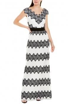 【SALE】120,000→88,000→ →→→67,000円(税抜)!! シックなモノトーンで魅せる レースボディスなロングドレス