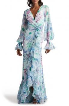 【SALE】100,000→73,000円(税抜) ドラマティックなシルエットに 花柄をたっぷりと配して ラグジュアリーなドレス
