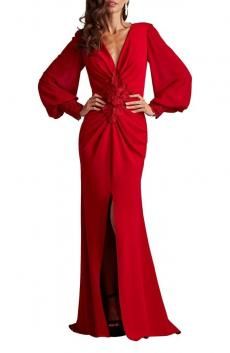 【SALE】110,000→80,000円(税抜) セクシーさとフェミニンさを感じ クランベリーレッドが上品さを 引き立てるロングドレス