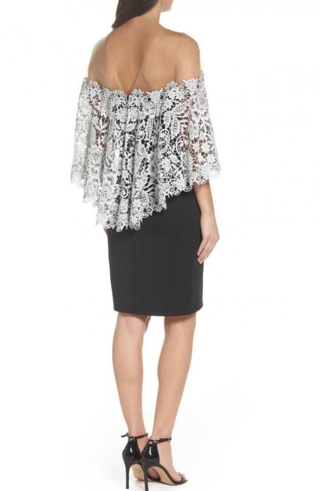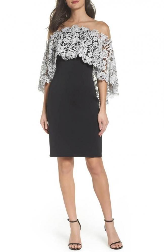 【SALE】ショルダーレス フリルレースオーバー ワンピース ブラック/アイボリー