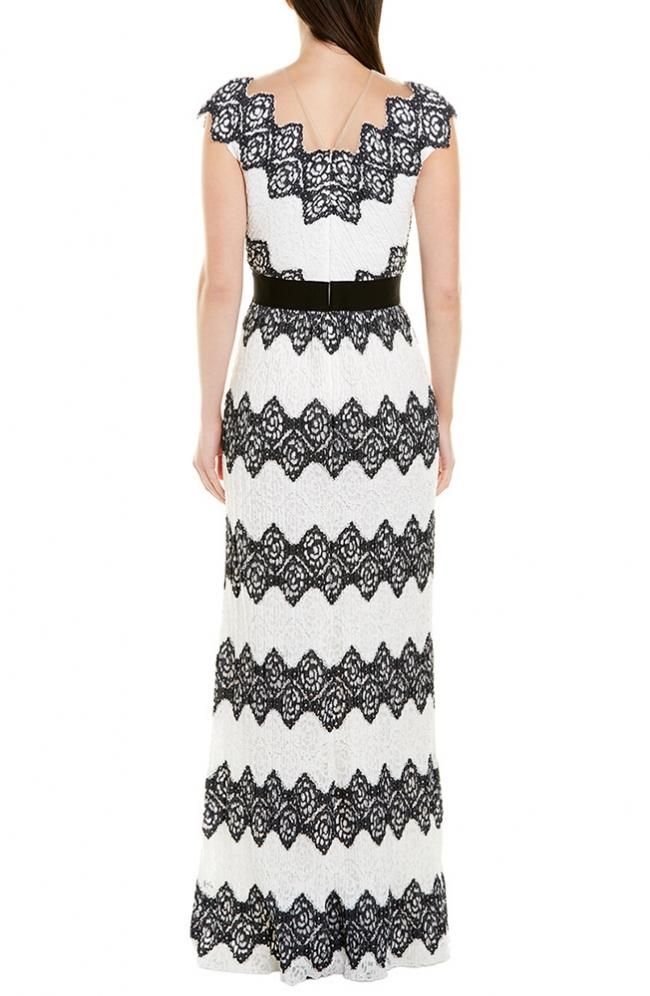 US8【SALE】キャップスリーブ ブロックカラー刺繍 ロングドレス Black/Ivory