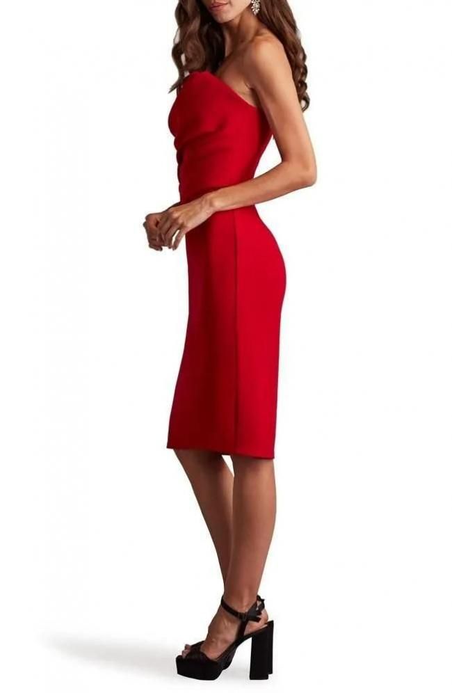 【SALE】クレープ タイト ストラップレス シースドレス レッド 赤 Flame