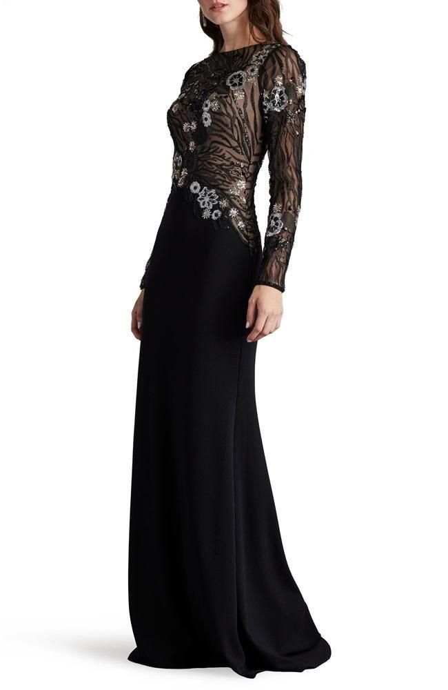 US4【SALE】セキンレース 長袖 スパンコール ロングドレス ブラック 黒 Black