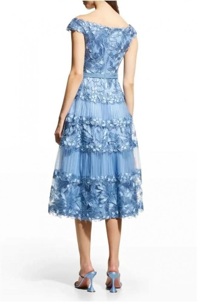 大人っぽい雰囲気を演出するミモレ丈 ふくらはぎの一番太い部分がカバーできるので 脚が細見えするレングスが特徴です。 パーティーから会食など幅広いシーンで活躍してくれる一枚 美シルエットでまとめて洗練された着こなしに♪ お色違いもございます♪ オフショルダー フローラル刺繍 ミディ丈ワンピース 自分に自信を与えてくれる”タダシ・ショージ ”。 どこから見ても女性らしい、ワンランク上のドレスです。
