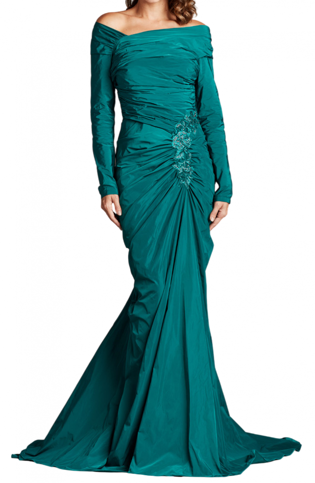 US6【SALE】オフショルダー タフタ ロングドレス Emerald グリーン